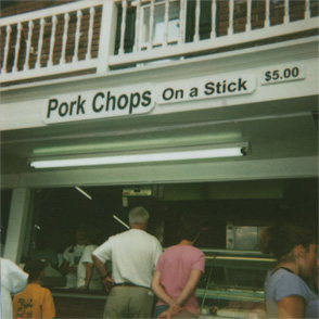 pork chops on a stick, nutrolls, ben and jerry's, buffalo burgers, elk burgers,